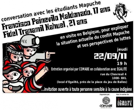 en visite en Belgique, pour expliquer la situation actuelle du conflit Mapuche et ses perspectives de luttes //